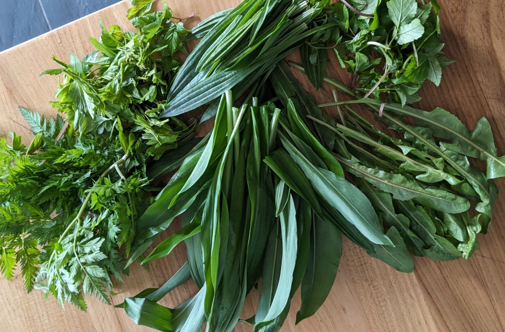Start by choosing your greens! It’s almost may so the wild garlic is getting a little more mature and not as tender so it’s perfect for cooking into things now. I also love to add the flowers. I try to leave as many flowers behind as I can so only take a few handfuls for any recipe. If you have never picked wild garlic before then check out my previous post for guidance. I love the garlic in this but any and all wild greens could go into the bread.